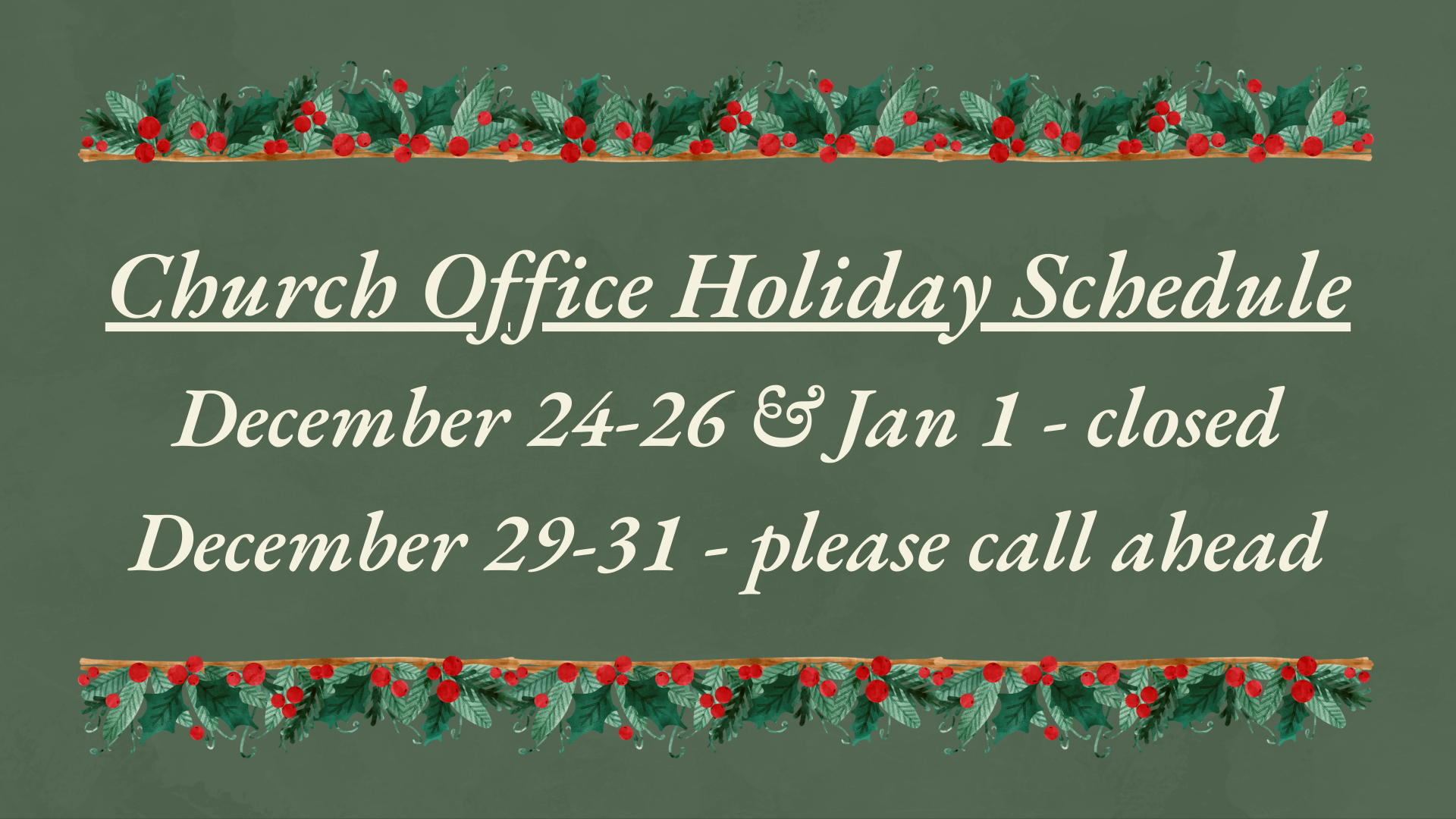 Led by the Holy Spirit, we glorify God, nurture the faith with each other, and witness the fullness of Christ’s love in the world.