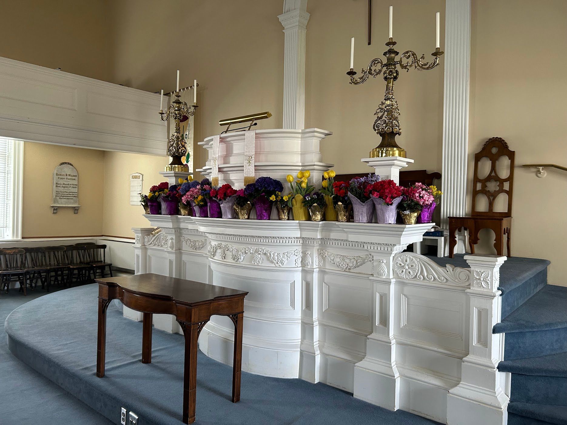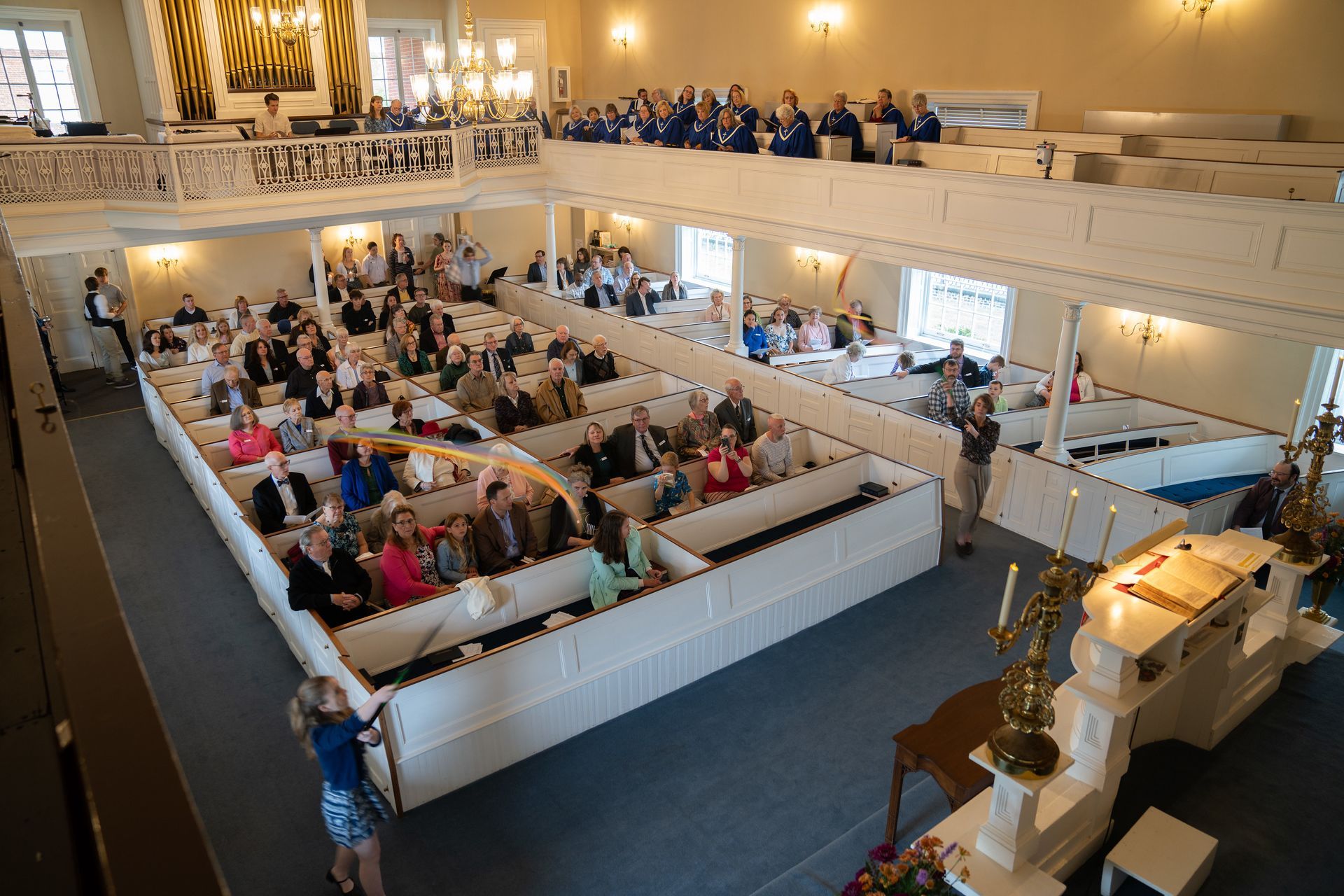 Join us in our 200 year old sanctuary, equipped with pew doors--reach inside to open them.